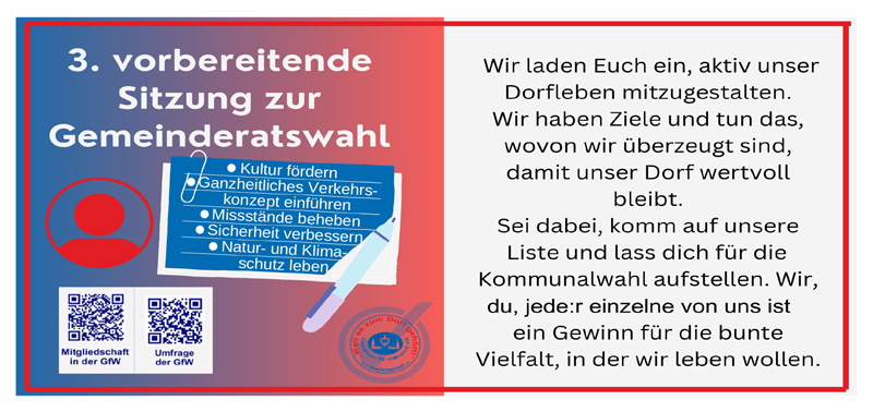 GfW lädt ein: 3. vorbereitende Sitzung zur Gemeinderatswahl – Aufstellung der Wahlliste