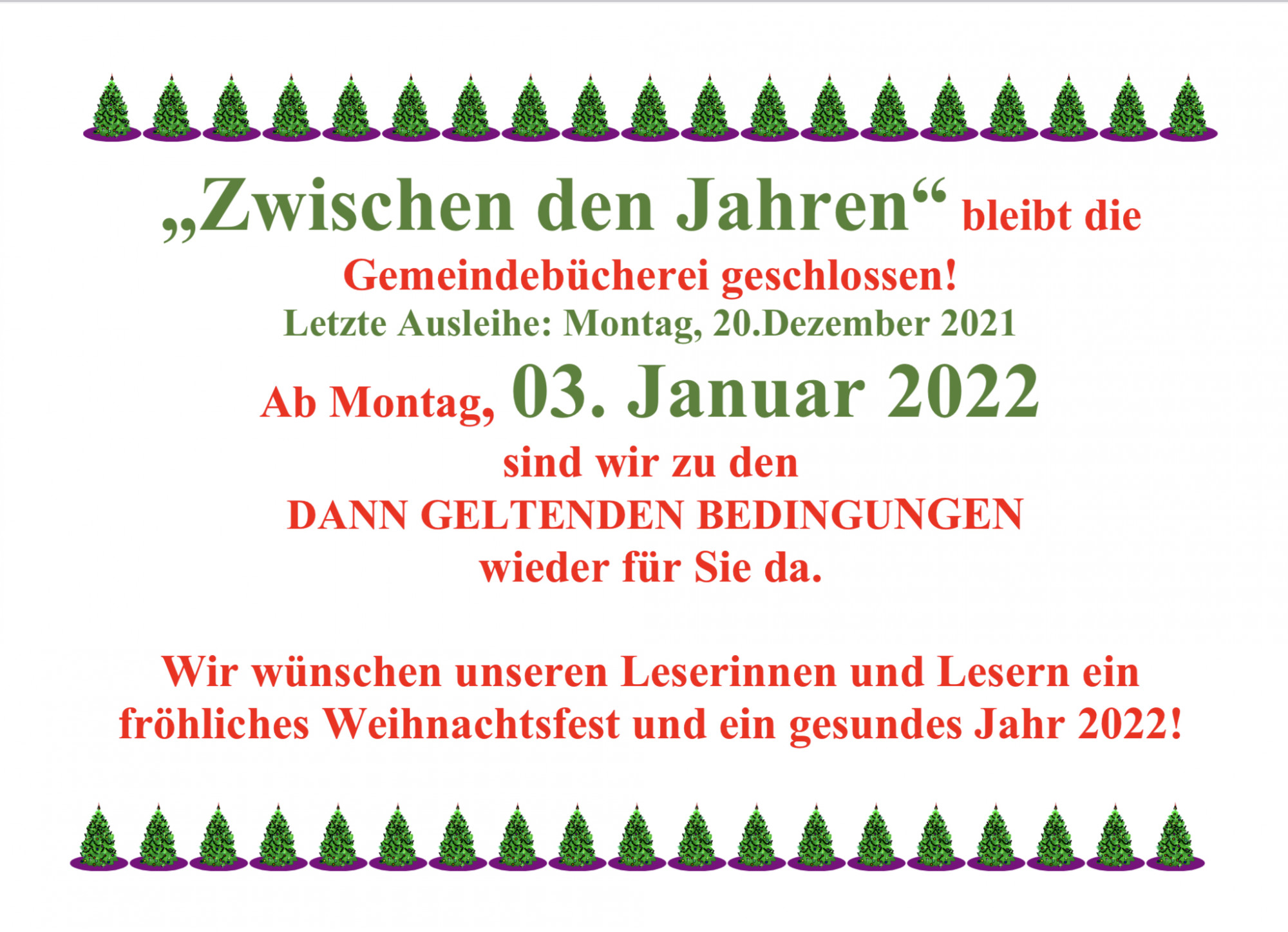 Gemeindebücherei zwischen den Jahren geschlossen