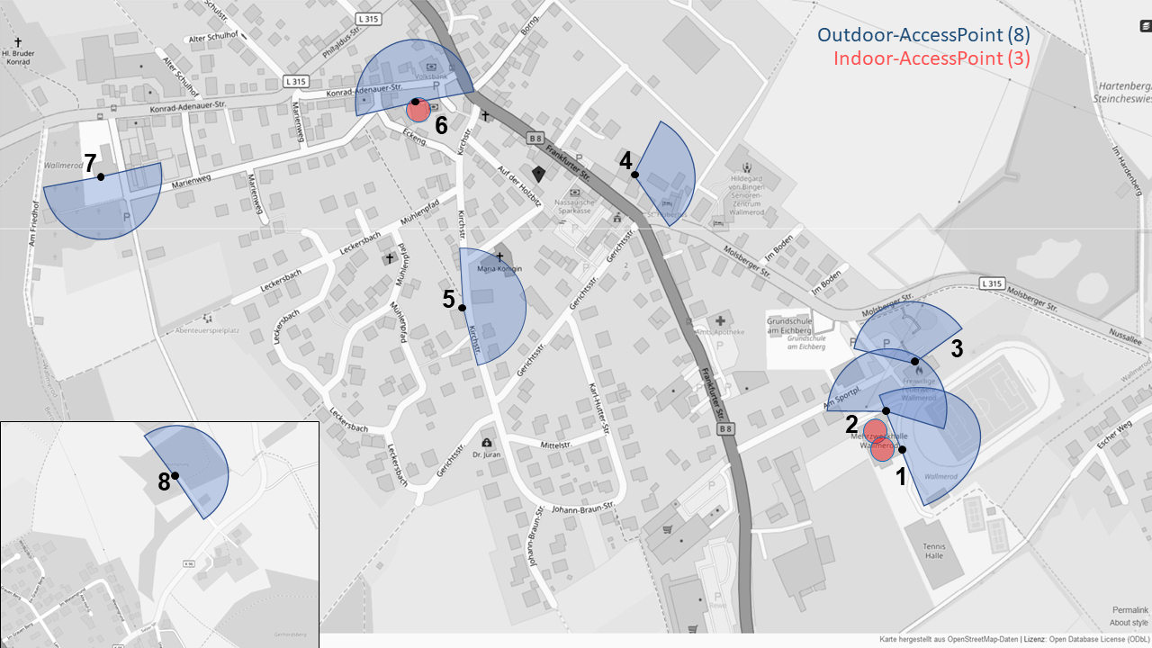 Die Gemeinde Wallmerod freut sich, allen Bürgerinnen, Bürgern und Gästen an insgesamt 8 Standorten freies WLAN zur Verfügung stellen zu können. Die Installation der Hotspots wurde durch die EU gefördert. Der Betrieb erfolgt gemeinsam mit dem WiFi-Plattform-Betreiber The Cloud, München.