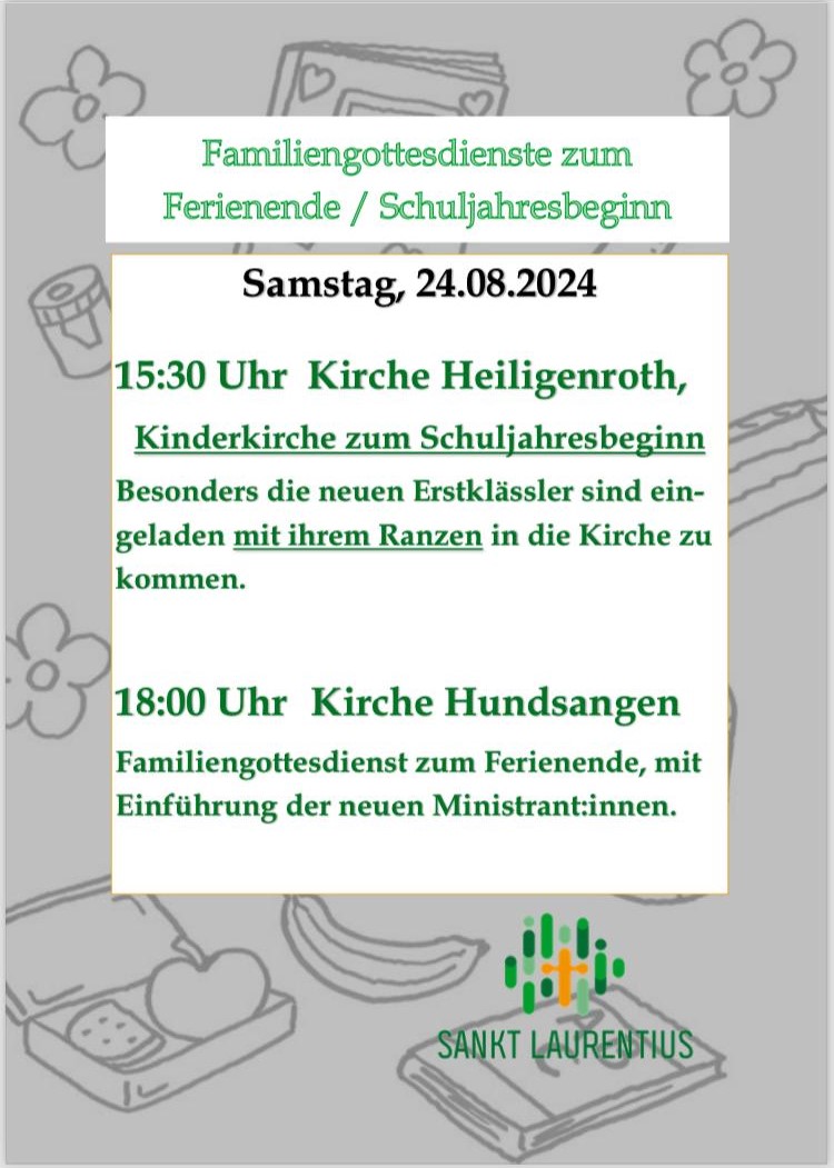 Familiengottesdienst zum Ferienende/Schuljahresbeginn