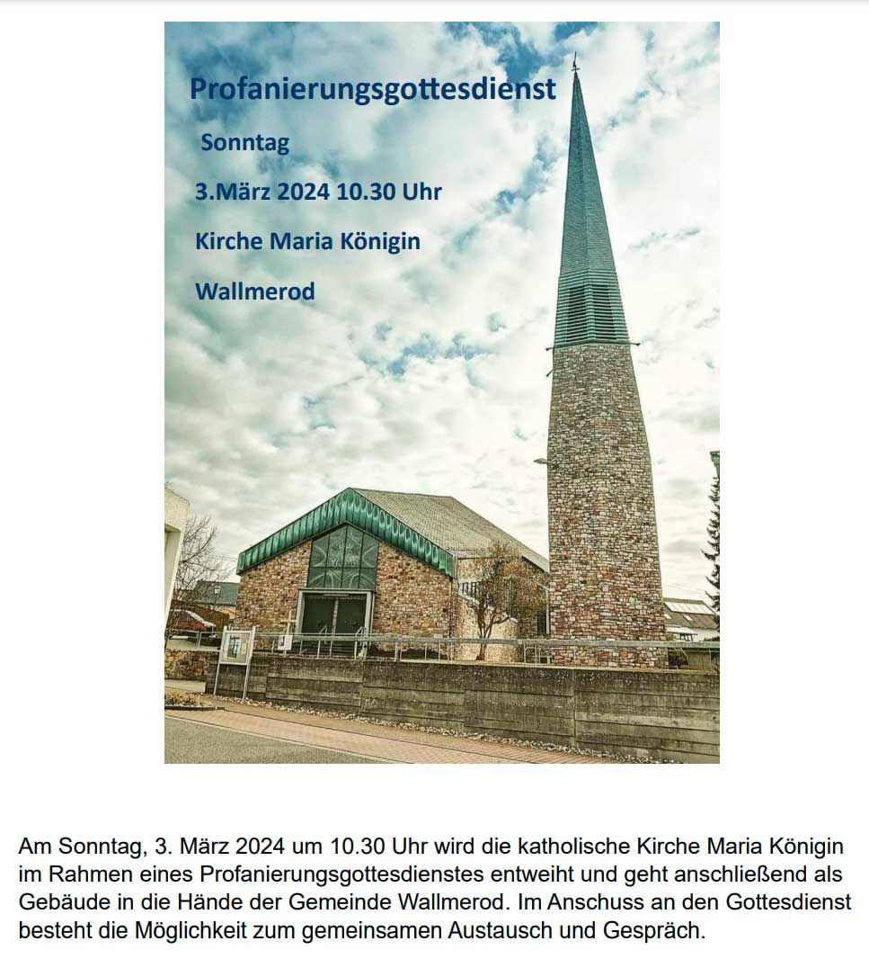 Profanierungsgottesdienst der katholischen Kirche Maria Königin