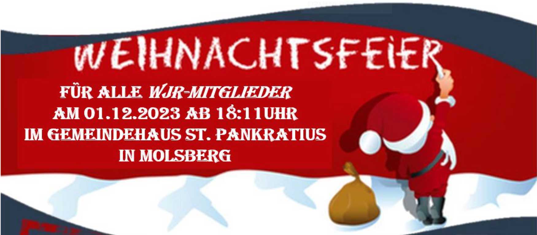 Der WJR lädt alle seine Mitglieder zur Weihnachtsfeier am Freitag, 01.12.2023 ab 18:11Uhr ins Gemeindehaus St. Pankratius in Molsberg ein.